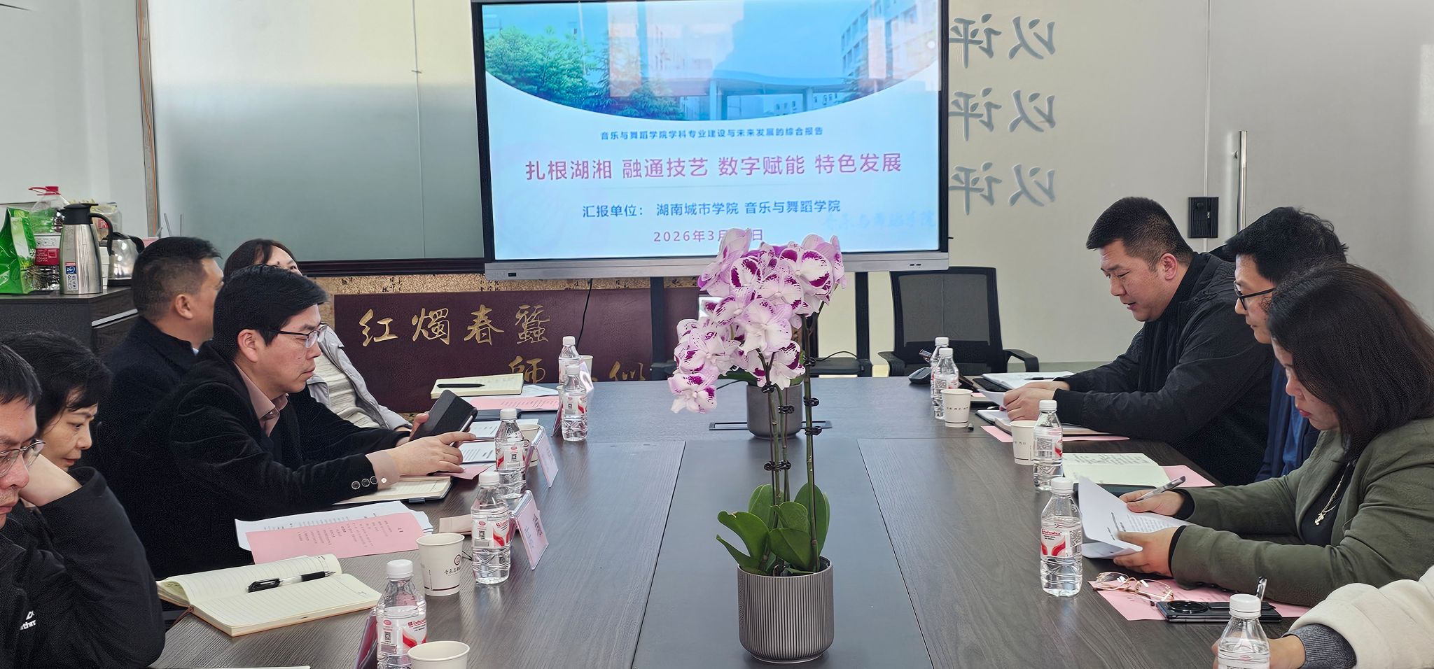 3月25日下午,校长陈瑜教授一行莅临音乐与舞蹈学院调研指导工作。党委委员、副校长张伟教授主持调研座谈会,科研处处长胡科、学科建设与发展规划处处长曾志伟、人事处副处长曹步文、教务处副处长祝青、党政办副主任孙智坤及学院党政领导、系室中心主任等核心骨干参加会议。