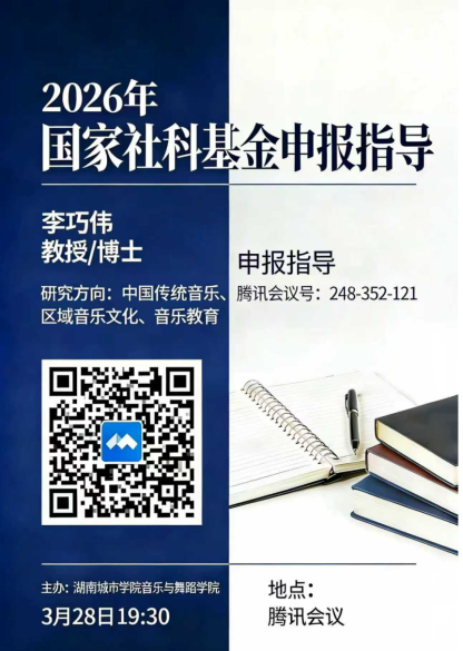 3月28日,湖南城市学院音乐与舞蹈学院以腾讯会议形式开展国家社科基金申报线上专项指导会,特邀长沙学院音乐学院院长李巧伟教授担任指导专家,会议由院长曹蕙姿统筹、科研副院长孙波负责组织管理。