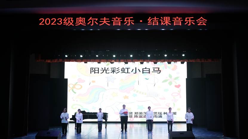本次音乐会由白卓灵老师担任指导,音乐学系主任刘科老师出席,牟华,邹方琴与罗媛三位老师参与评审,2023级音乐学系全体学生参与演出。从音乐会海报与节目单可见,演出共呈现《阳光彩虹小白马》《四季欢乐颂》《青春交响队》等15个原创编排的奥尔夫音乐节目,所有节目的曲目均取自于中学课本,旨在让学生感受到奥尔夫音乐教学法的多元融合特性,通过欣赏多元音乐,培养学生核心素养,提升学生的审美感知力与文化理解能力。引导学生体验、表现和创造音乐,不仅能陶冶情操、涵养品格,更能激发想象力与创造力,促进学生全面而有个性的发展,为终身学习和享受艺术奠定坚实基础。