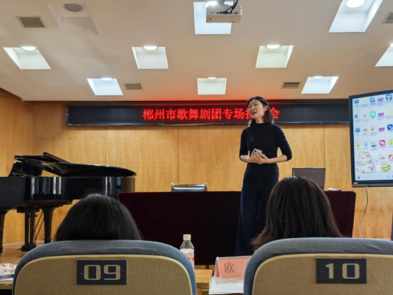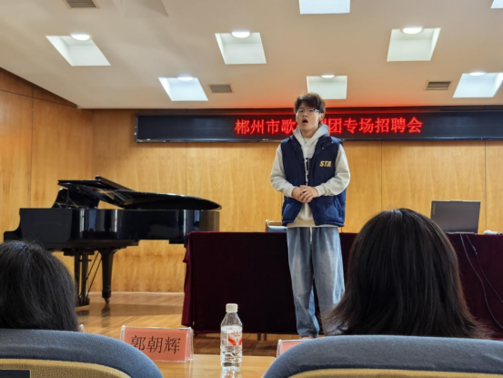 招聘会现场气氛热烈。郴州市歌舞剧团欧副团长首先向同学们详细介绍了剧团的发展历程、代表作品、人才晋升机制,以及本次招聘岗位的具体要求与职业发展前景。作为湖南省内颇有重要影响力的专业艺术院团,剧团深厚的艺术底蕴和清晰的人才培养路径,引起了在场学生的浓厚兴趣。在随后的面试环节,同学们逐一展示了扎实的专业功底和良好的艺术素养。舞蹈专业学生展示剧目片段,声乐、器乐专业学生进行现场演唱、演奏。招聘团队与学生深入交流,不仅考察技能,也看重学生的艺术热情、团队协作能力及创新潜力。