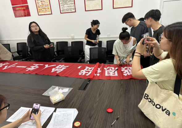 活动尾声,全体毕业生在“感恩还贷,给人生一个承诺”的横幅上签下自己的名字,并合影留念。镜头前,师生们笑容灿烂,定格下这一充满意义的瞬间。合影不仅是对活动的纪念,更象征着同学们即将带着诚信与感恩,踏上新的人生征程。(撰稿:文佩瑶一审:夏浩东二审:曾遴琳三审:谢立新)